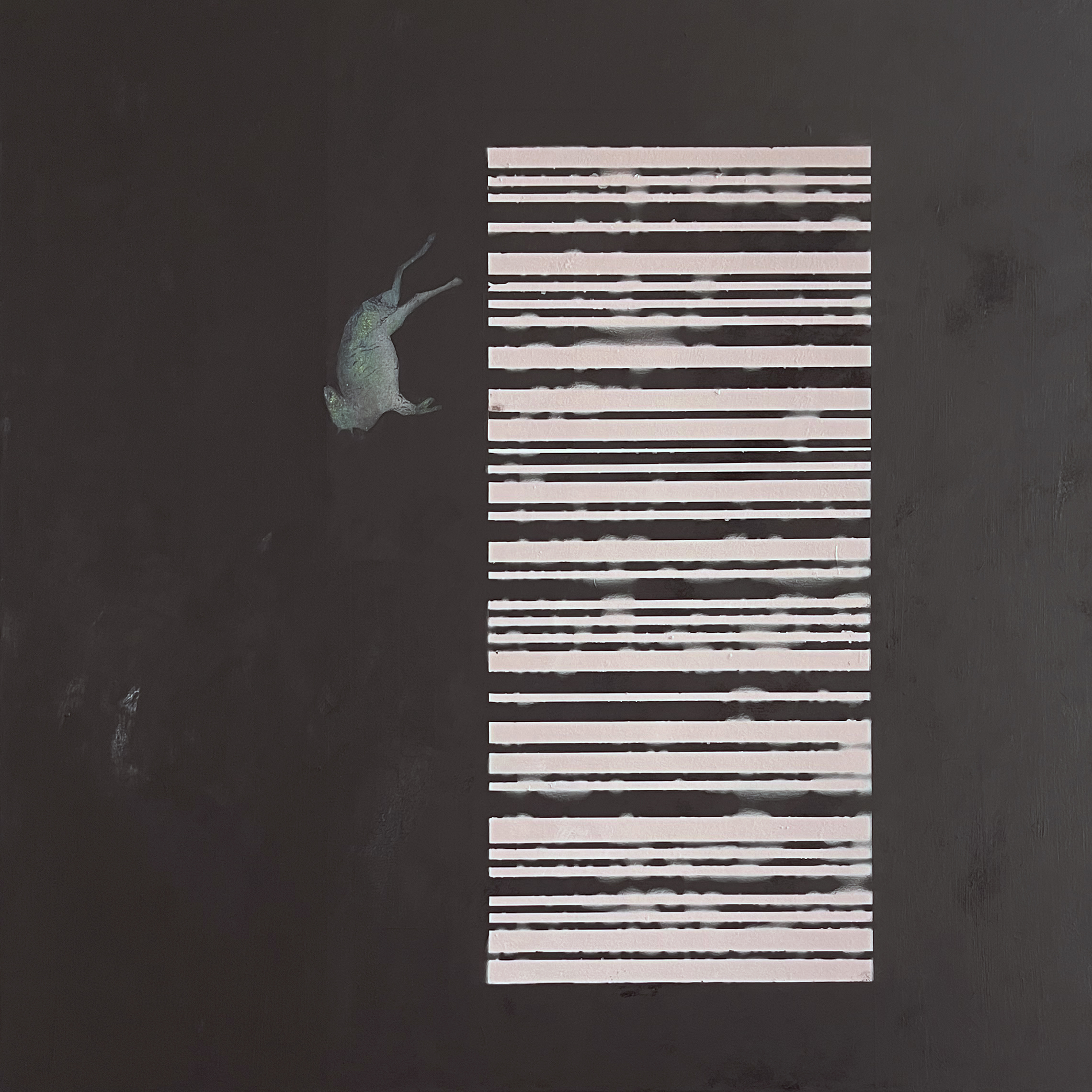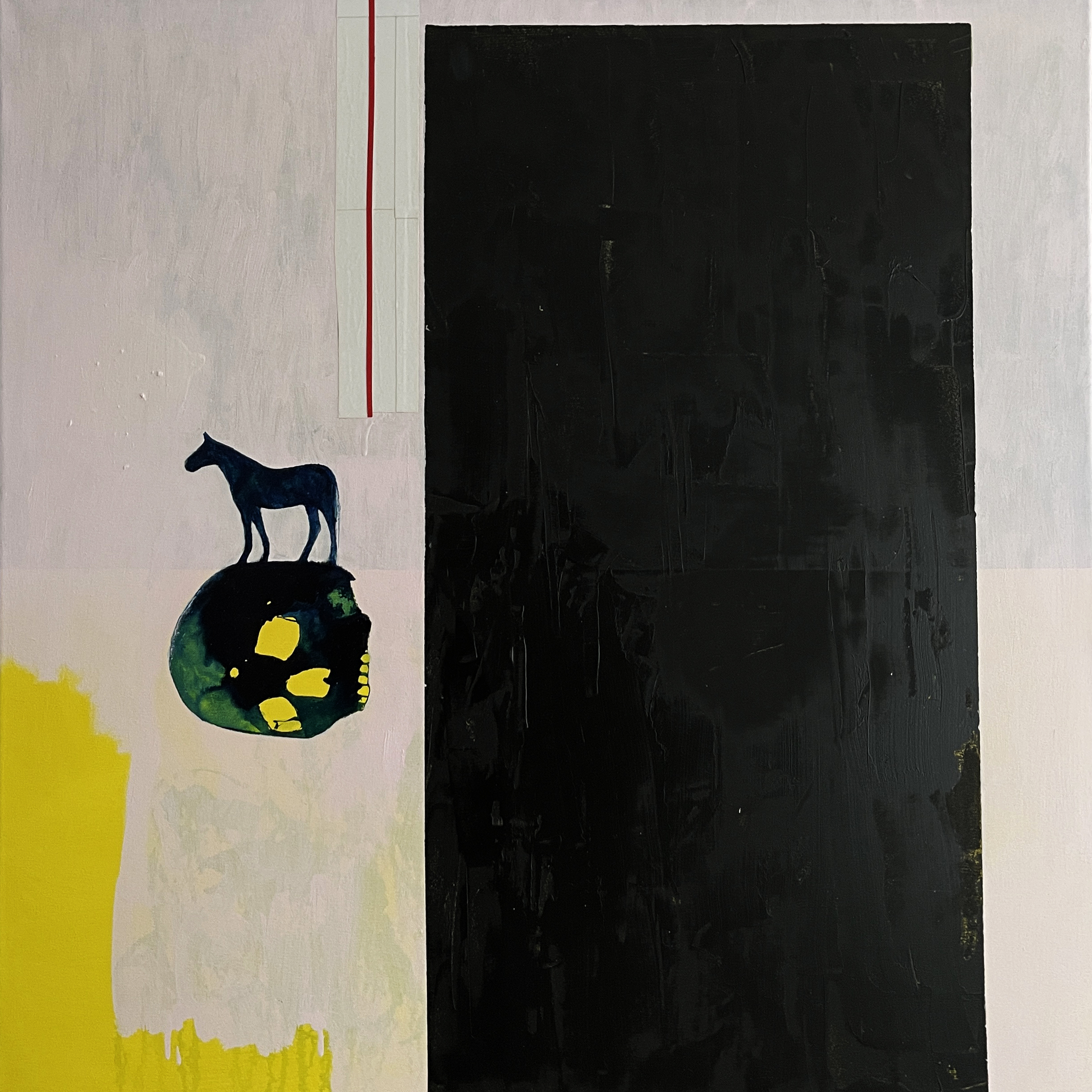 Oil and spray paint on canvas 900 x 900 x 40mm