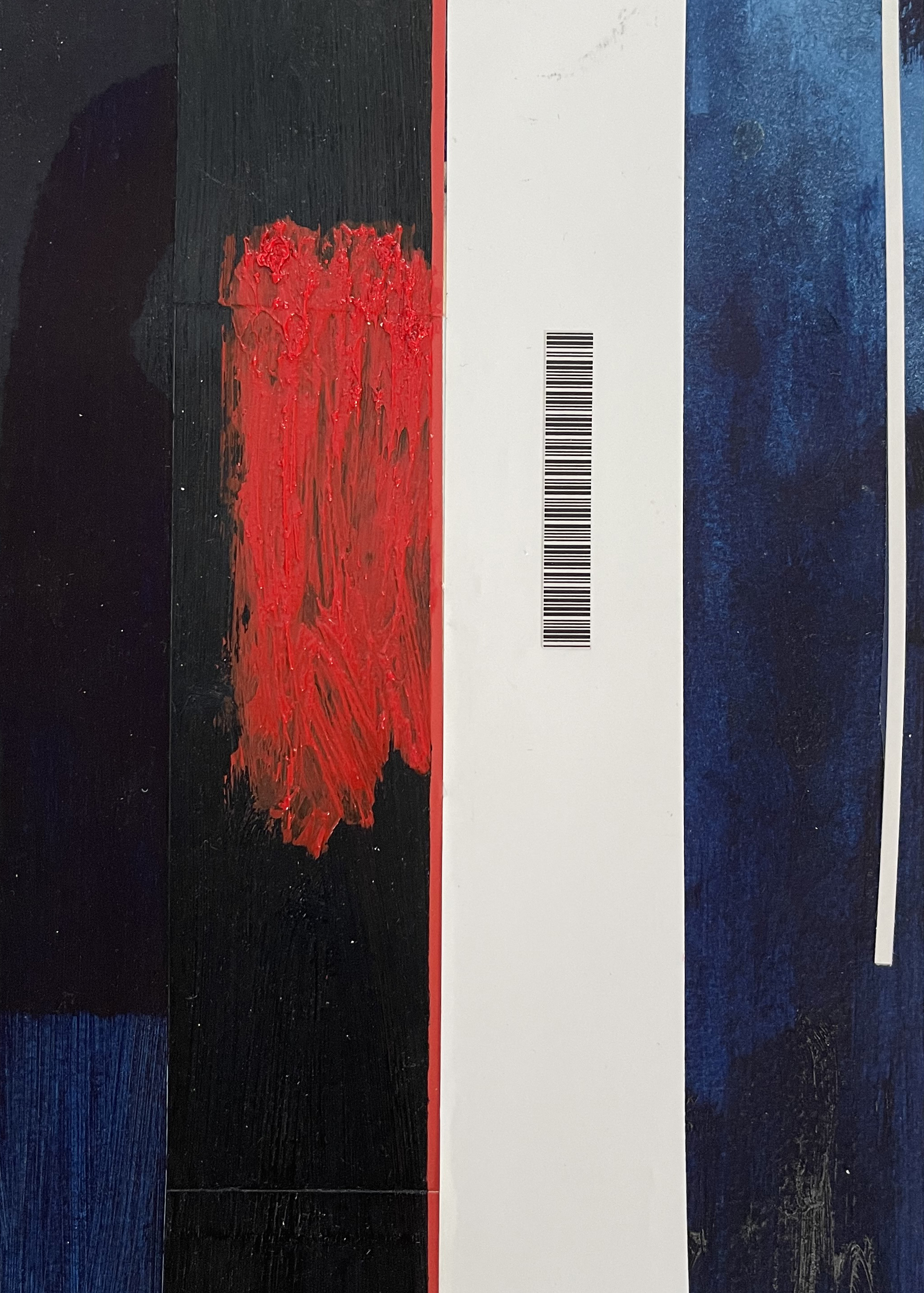 Oil and vinyl wrap on canvas 900 x 900 x 40mm