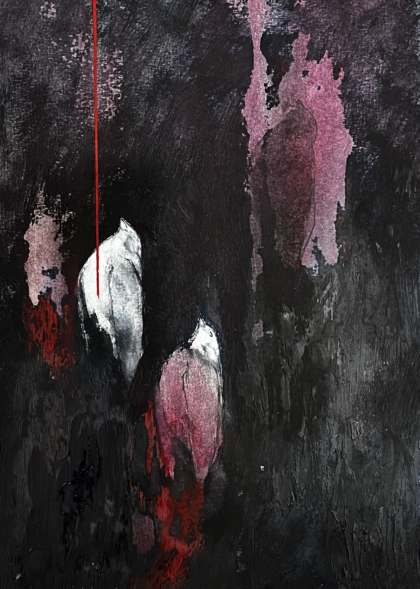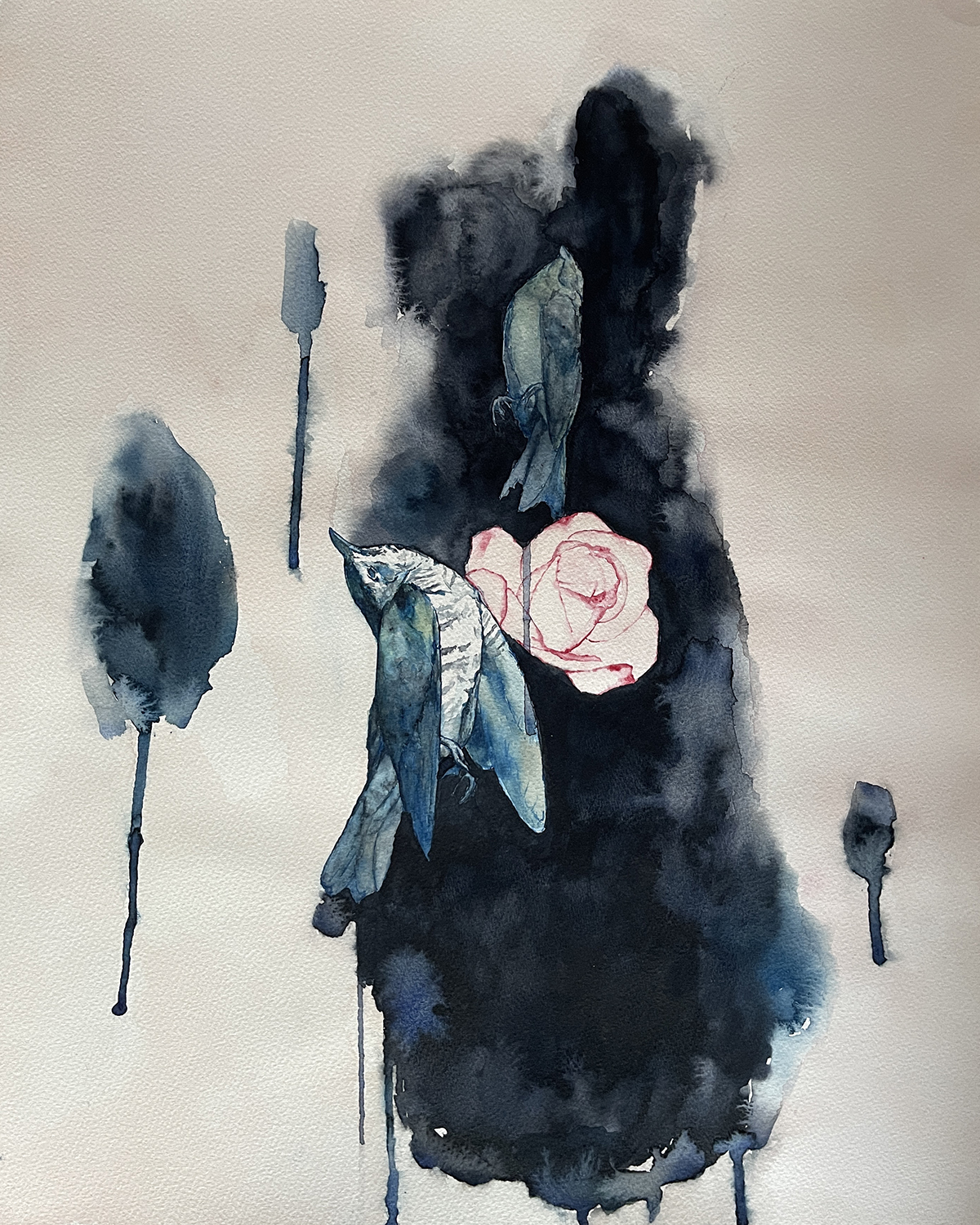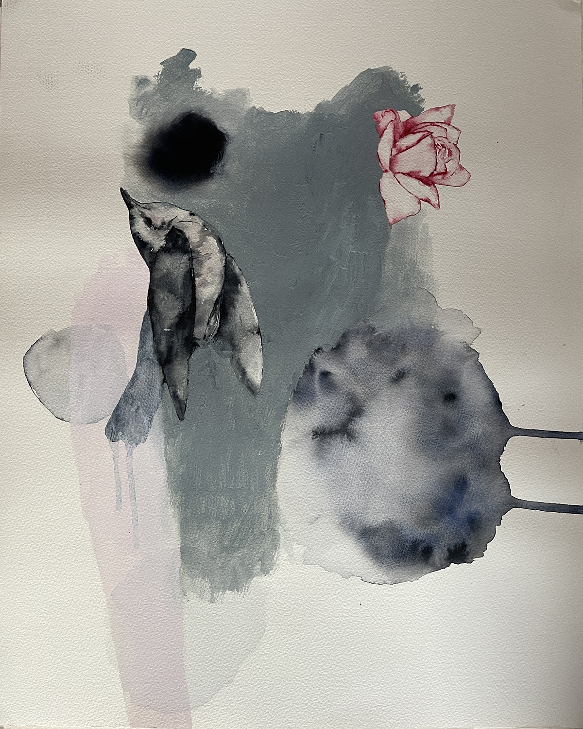 Watercolour, acrylic and oil on paper 185 x 185mm
